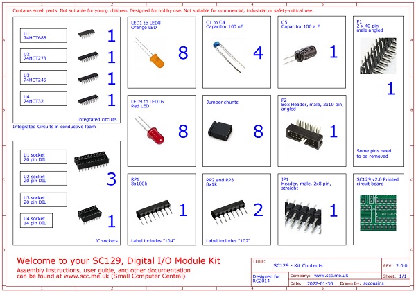 The first thing to do is identify all the components and check you have everything you need. You will usually find a list of parts, sometimes called a Bill of Materials (BOM).