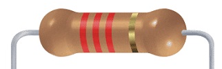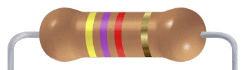 Resistors typically have their resistance (in Ohms) and tolerance (in percent) coded with coloured bands.