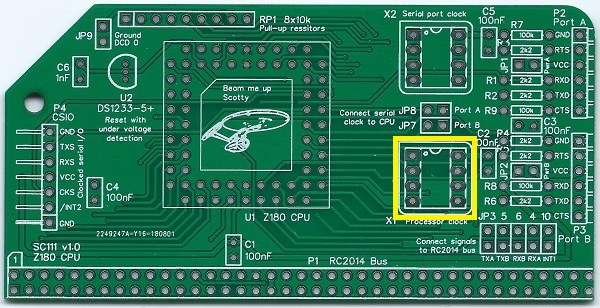 A socket has been provided for oscillator X2, but it is not normally required. This oscillator can be used as a clock source for the serial ports. Use of this feature will require suitable software.