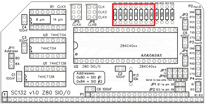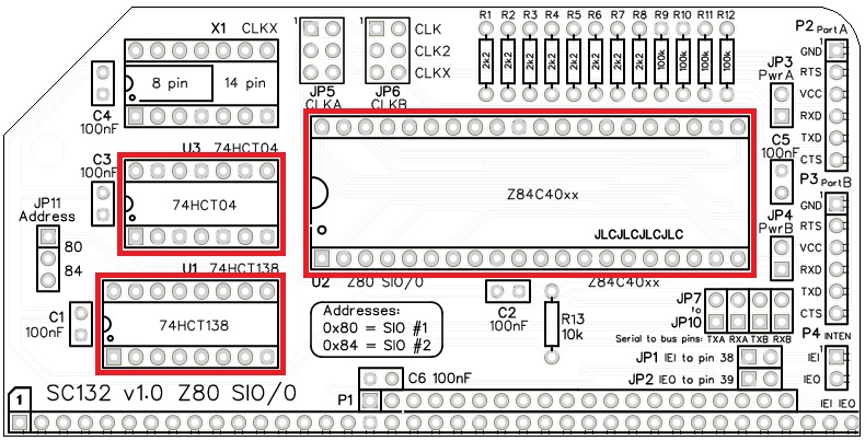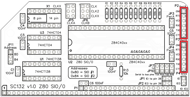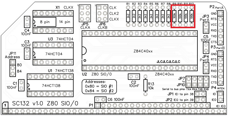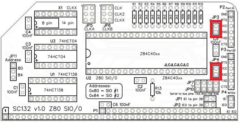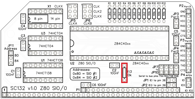 The default SIO address is 0x80. This is the address assumed for the first Z80 SIO by existing firmware and software. SC132 provides for an alternative address at 0x84, but this requires appropriate software support.