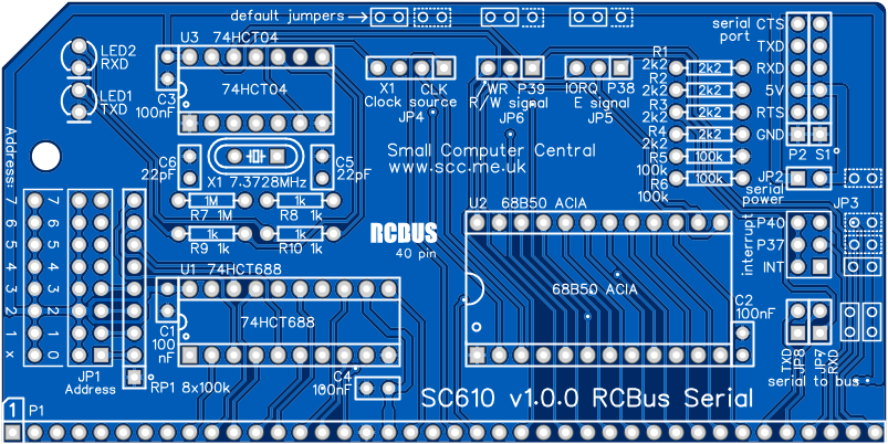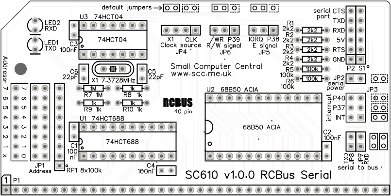 This module conforms to the RCBus specification v1.0 for RCBus-2014 (40-pin bus) and RCBus-Z80 (40-pin bus).