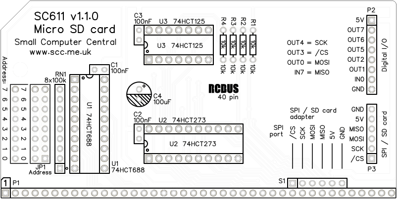 SC611 is an SD card storage module for the 40-pin RCBus.