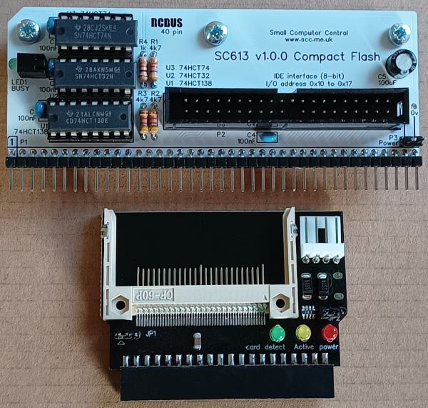 SC613 is a Compact Flash module designed for the 40-pin RCBus. It is intended to connect to the end of a backplane.