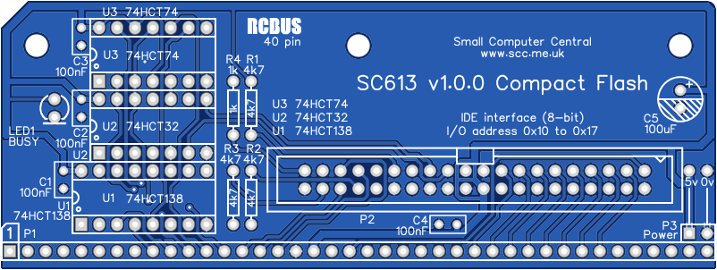 SC613 is a Compact Flash Card interface for RCBus. It uses Tadeusz Pycio’s design to correct the timing between the Z80 CPU and the Compact Flash card.