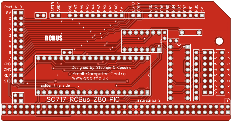 The module supports the Z80 interrupt priority chain with jumpers to allow it to use the bus pins specified in the RCBus specification. Alternatively, the IEI and IEO signals are available on JP2 and JP3.