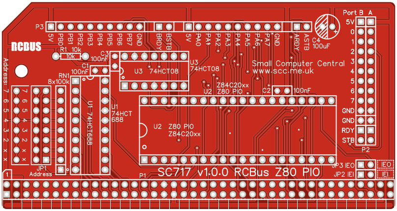 SC717 is a digital I/O module using a Z80 parallel I/O chip (Z80 PIO) which has 16 general purpose I/O pins plus 4 handshaking pins.