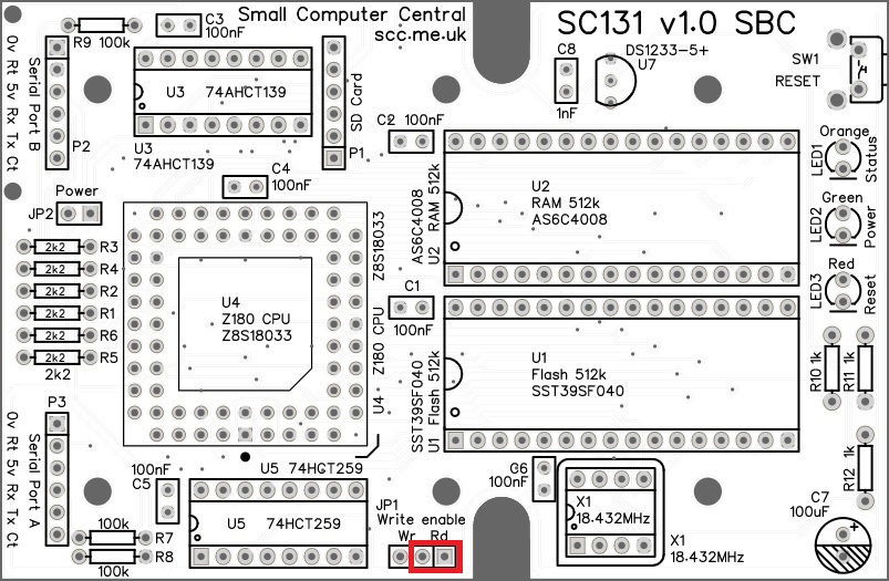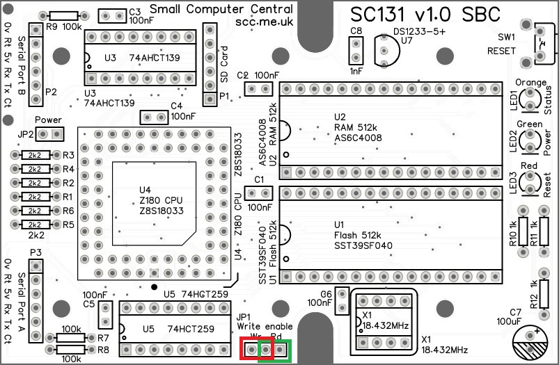 Jumper JP1 enables the Flash chip to be write protected. It is unlikely the Flash chip will be corrupted in normal operation due to the software requirements to write to it. However, for peace of mind you can disable writing with a jumper shunt.