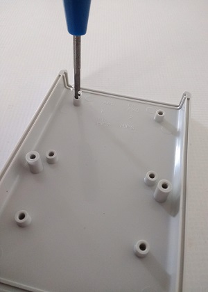 To assemble the case and its contents, hold the front and back panels in position at each end of the main PCB and lower the three parts together into the base of the case. The base is the part with the screw holes visible from outside the case.