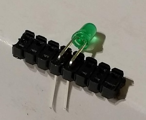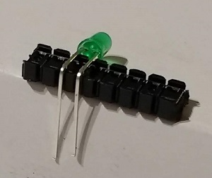 Use this as a guide to bend the LED legs to 90 degrees, as shown. Note very carefully the length of the leads on the LED. One is longer than the other. It is vital they are the right way around.