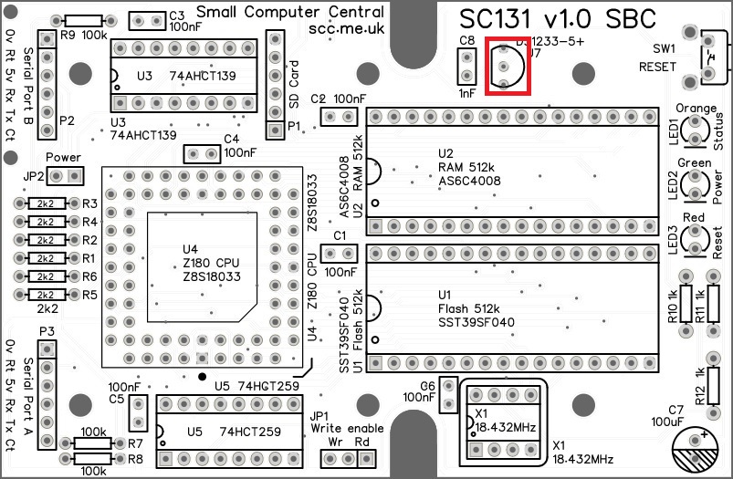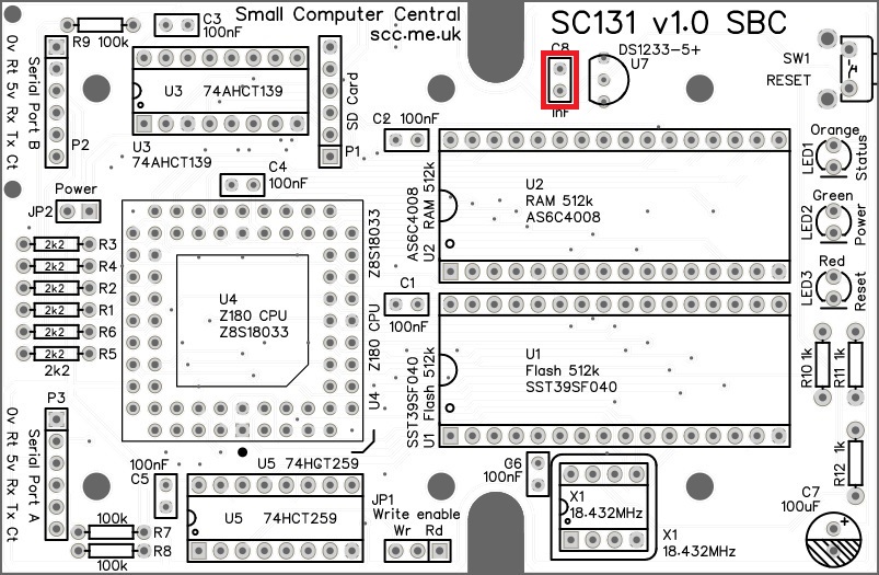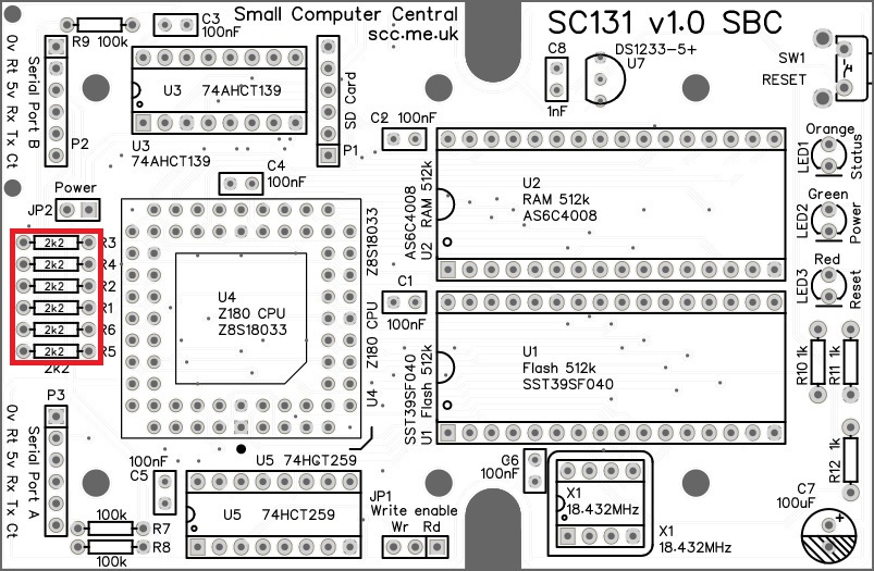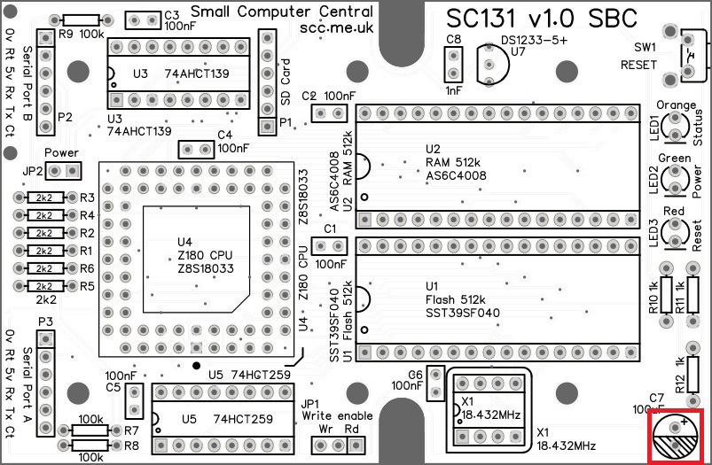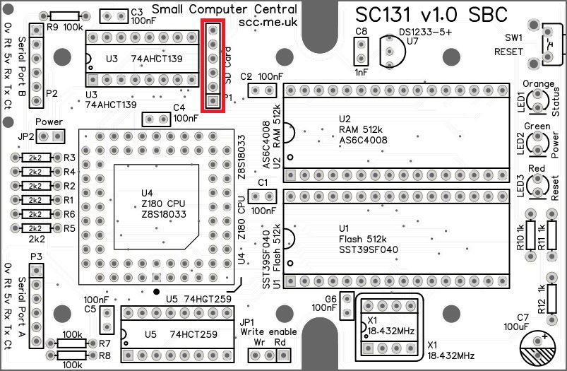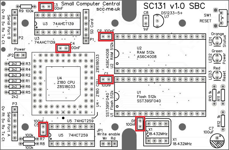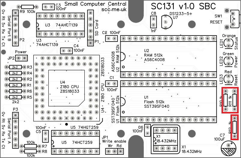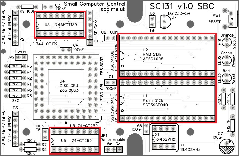 Click here for a list of the parts required to build an SC131, v1.0, pocket-sized Z180 computer.
