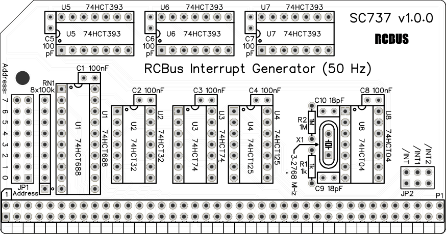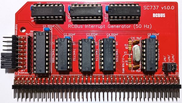 SC737 is a 50 Hz interrupt generator module designed for the RCBus.