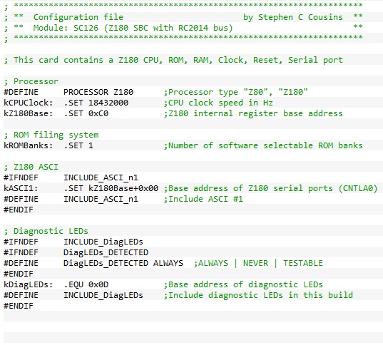 Each build of SCM is configured by the file “<config_name>.asm” in the “Config” folder tree. An example configuration file is shown below.