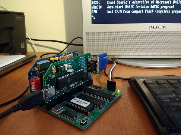 The terminal module allows an RC2014 based system to work without a computer acting as a terminal. Here it is shown with SC126 (Z180 Motherboard), an old Samsung VGA monitor, and a Logitech USB keyboard.