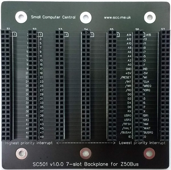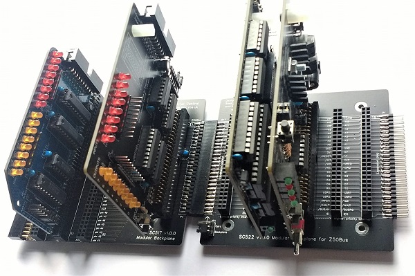 • SC503 – Z180 processor card with CPU, memory, serial ports, and SD card interface