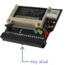 If you fit the box header you will need to cut or file the key stud off the compact flash adapter, as the box header’s key slot is on the wrong side for this particular application.