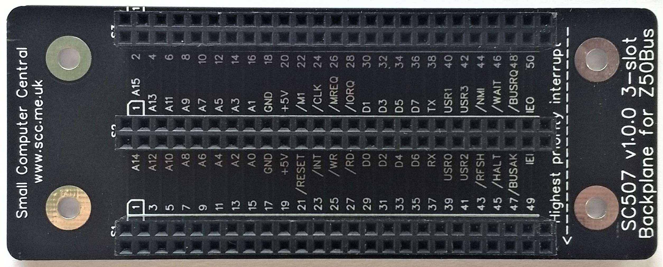 - Cards using Z80 mode 2 interrupts need to be grouped together with the highest priority interrupting device to the left (as illustrated above). These cards are linked by a daisy-chain which is incorporated into the backplane. As a result you must not leave an empty slot between any cards generating interrupts.