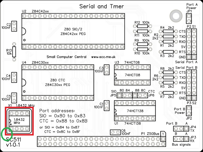 This card has its own oscillator as a clock source for the CTC, making the serial port and timer functions independent of the CPU’s main clock.