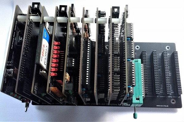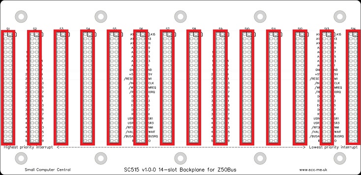- Cards using Z80 mode 2 interrupts need to be grouped together with the highest priority interrupting device to the left (as illustrated above). These cards are linked by a daisy-chain which is incorporated into the backplane. As a result you must not leave an empty slot between any cards generating interrupts.