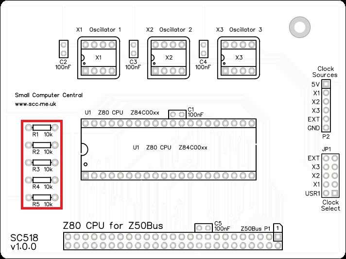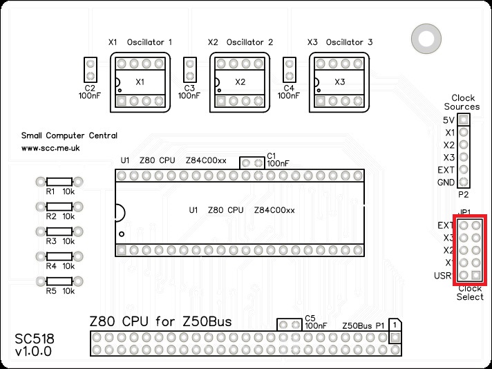 Alternatively, the clock signal can be provided on the Z50Bus pin 39 (USR1) or an external signal pin on connector P2. These signals can be clock rates from D.C. (zero Hertz) to the maximum the Z50Bus can support (typically 8 MHz but with suitable components, it could be 20 MHz).